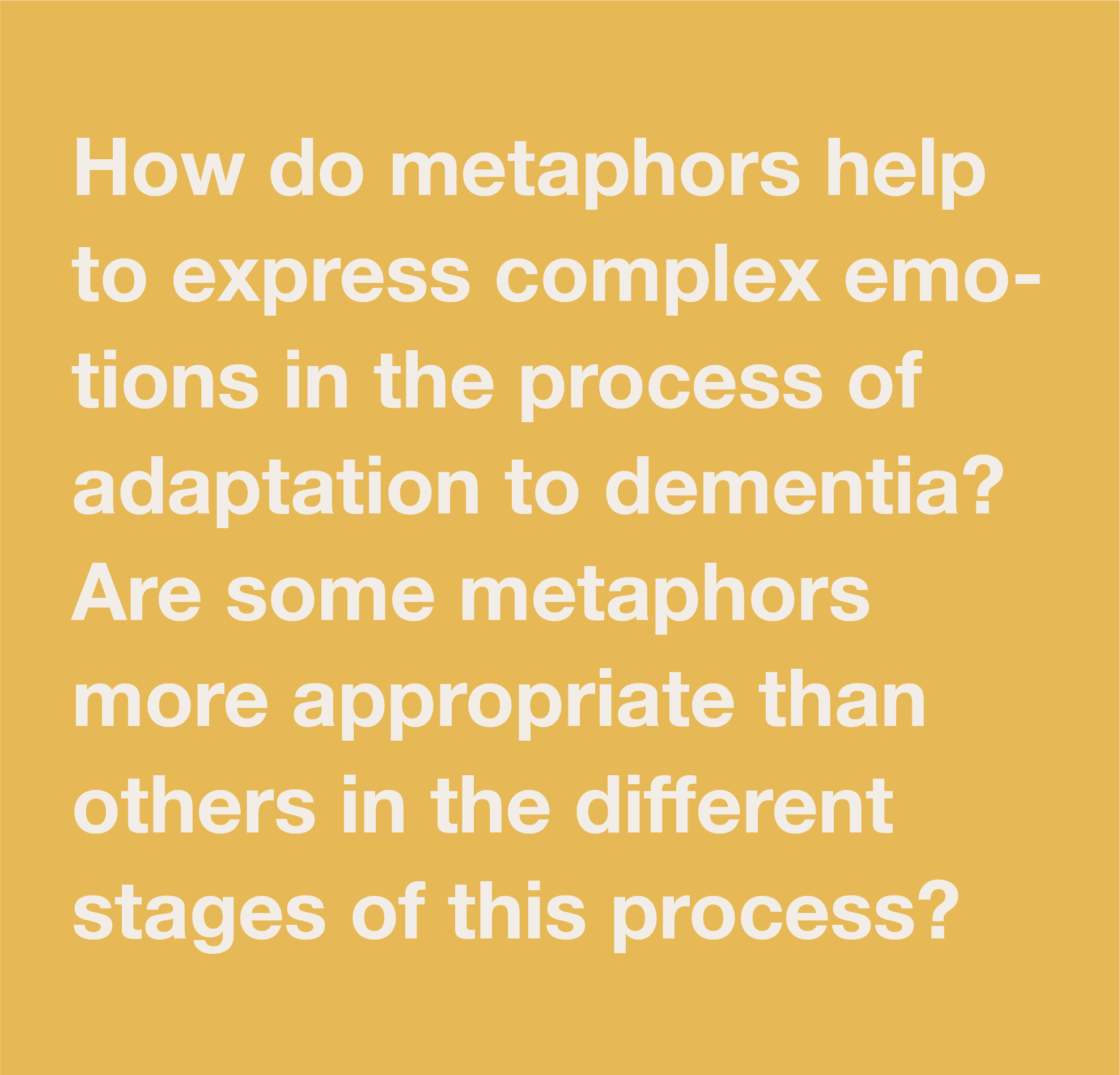 Clarifying the role of metaphor as a potential tool to verbally express emotions in the different phases of adaptation to dementia.